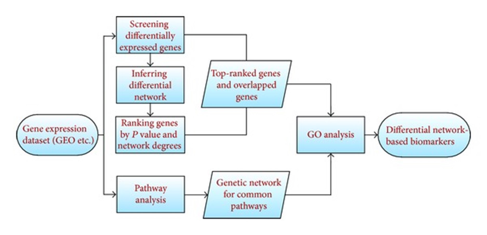 图1:方案流程图:基于差异网络的癌症生物标志物识别。