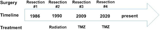 图1:疾病史和管理的时间表。TMZ,替莫唑胺。