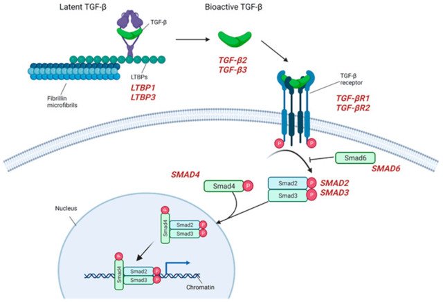 主动脉瘤传统上根据主动脉外临床表现的存在(综合征性胸主动脉瘤)或不存在(非综合征性胸主动脉瘤)进行划分。综合征型主动脉瘤患者的全身特征反映了结缔组织疾病的存在,例如马凡综合征 (MFS)、Loeys-Dietz 综合征 (LDS)、血管 Ehlers-Danlos 综合征 (vEDS) 和动脉迂曲综合征。二尖瓣主动脉瓣 (BAV) 是另一种常见的与主动脉瘤相关的疾病,目前被认为是其发展的独立危险因素,在某些情况下主动脉扩张,即使存在正常功能的 BAV 和/或不管体力活动,正如最近在儿科患者中评估的那样。非综合征性主动脉瘤占所有主动脉瘤病例的 95%,如果至少有一个一级家庭成员受到影响,则进一步分类为散发性或家族性。主动脉瘤的不同表现在扩张发育的分子病理生理学(受损的细胞外基质 (ECM))、胶原蛋白稳态、TGF-β 信号通路的改变、平滑肌和细胞骨架装置的破坏方面具有相似之处,即使外显率不同,遗传力显着。