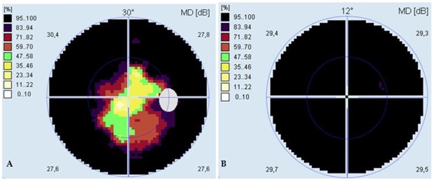 图 3:( A ) 右眼视野;( B ) 左眼视野。
