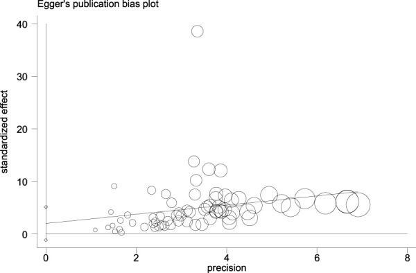 图 16:用于评估发表偏倚的漏斗图、EageGD 和 Beggs 图。
