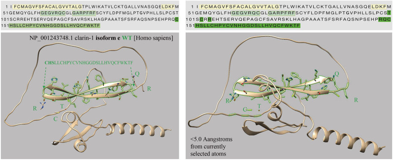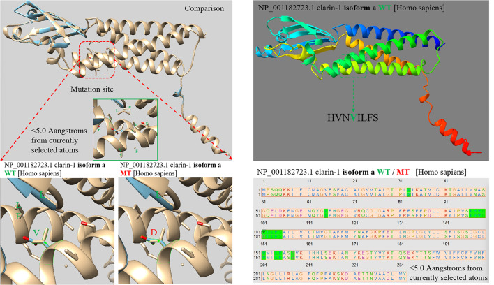 Alphafold2 预测软件显示 CLRN1c.302T > A 导致 alpha 折叠异常,并未引起其他空间结构变化