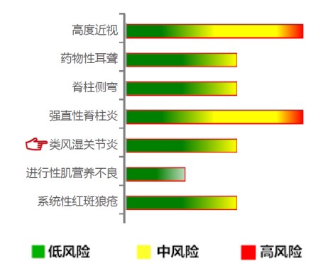 类风湿关节炎是在基因与环境的共同作用下,导致疾病的发生。因此,通过类风湿关节炎风险基因解码基因检测可以提前预知疾病风险,揭示发病原因,在生活中有针对性的规避并采取积极地措施预防,可有效延缓甚至避免疾病的发生。