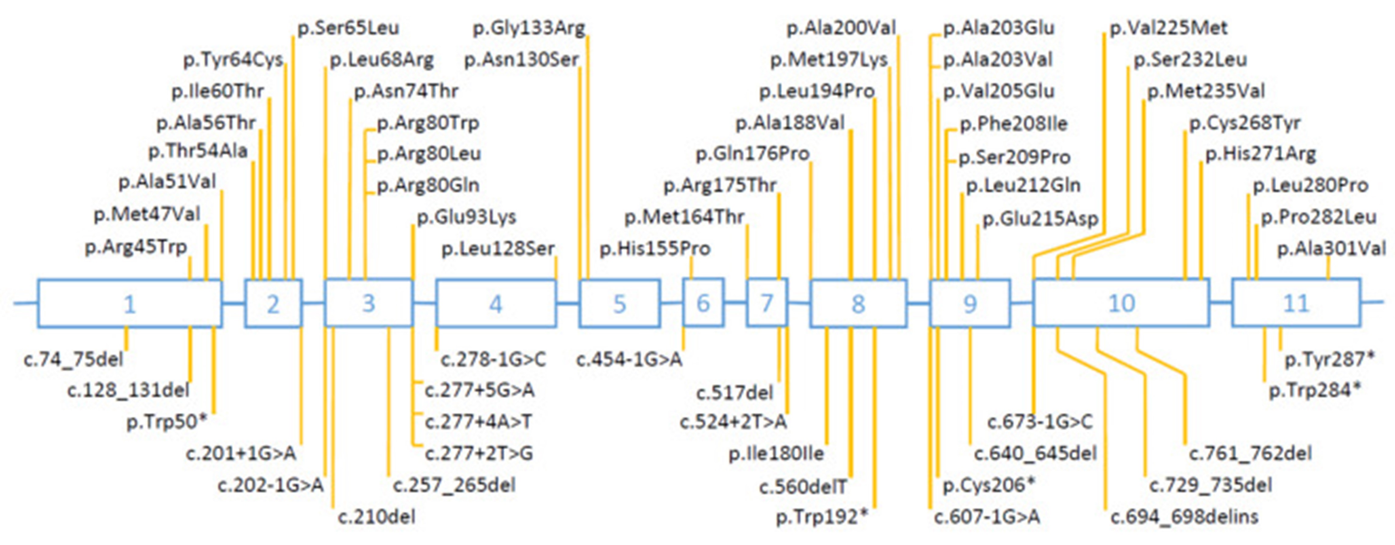 图 2:佳学基因17β-羟基类固醇脱氢酶缺陷症的基因突变记录
