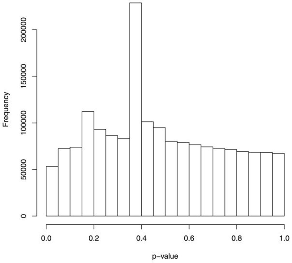 图 4:应用于 CLL 甲基化数据的建议检验的P值分布。
