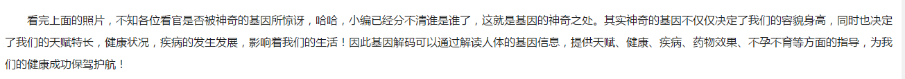 基因可以指导每一个细胞在母体内发展到一个人的全过程,包括男性女性选择、身体高矮、眼睛颜色、肤色深浅、具体长相等等。