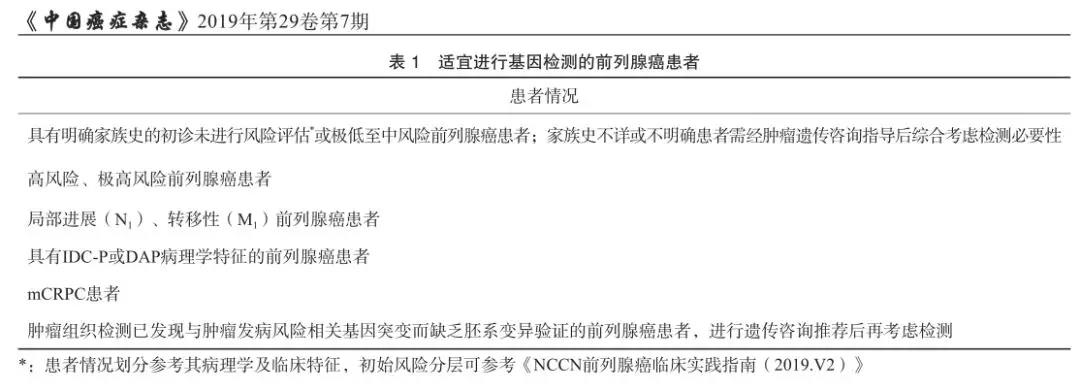 如肿瘤组织检测已发现与肿瘤发病风险相关基因突变而缺乏胚系变异验证的前列腺癌患者,建议遗传咨询后再考虑是否进行检测。